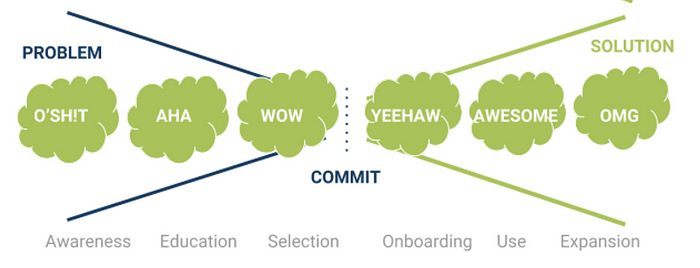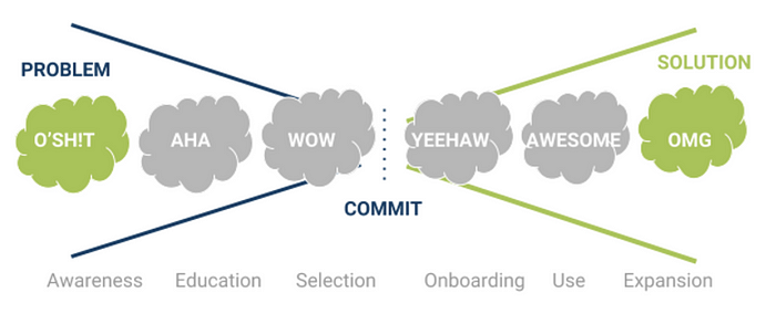 - AHA there is a solution: The customer has identified a potential solution to the problem often through online research before they are interested to talk to anyone.