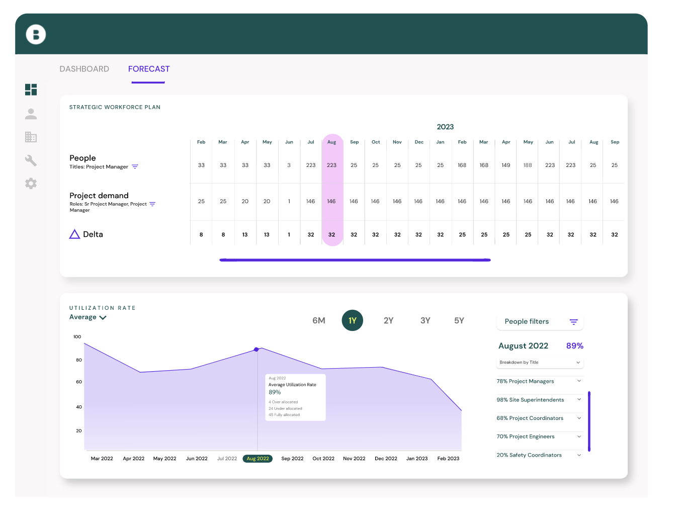 - Workforce and Project Management — Workforce and project planning is a critical component of the construction industry and is vital to understanding what an organization’s capacity and resource availability are. The challenge is that all workforce planning today is done in Excel with each team, department, and location managing their own spreadsheet. Bridgit Bench gives a real-time overview of all projects and workers so teams can make data-driven decisions to manage changes and complete projects effectively and on time. Furthermore, the platform scales across all locations and departments so teams can collaborate and work off of the same data dramatically increasing efficiency.