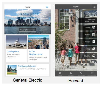 In addition to a physical experience resembling nearby Boston universities, GE adopted the same mobile campus app for its employees at corporate headquarters as the ones adopted by nearby Boston universities. GE, Harvard, MIT and UMass are all customers of Modo Workplace™.