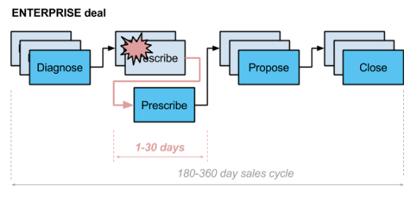 Case-in point: At one of my clients an AE ran into a PII issue during the demo. Unaware of the consequences he assumed it would be okay to address later on. Six months later during the Proposal the PII issue came up again. Since the AE had not informed the engineering department, it could not deliver a solution on-time causing the company to lose the deal to an inferior competitor. The company lost nine months of investment. Most enterprise deals have tens of these critical moments that an AE needs to recognize and take action on.