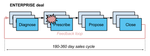 When we promote the SMB AE into an Enterprise AE role, without training they will follow the very same approach not knowing any different. This causes a much longer feedback loop. However with fewer deals the impact is far greater.
