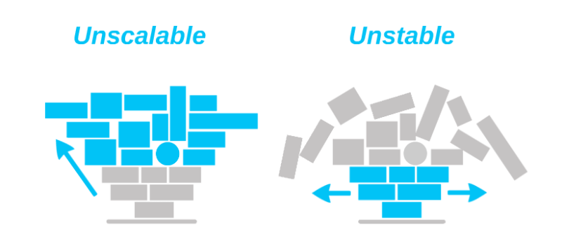 As the market accelerates the sales organization has to match the pace. With the above model you find yourself throwing more blocks on the heap. More people. More tools. More and more. Without a proper design you are simply scaling failure. Worse as you increase the velocity during rapid growth the structure becomes more likely to collapse.