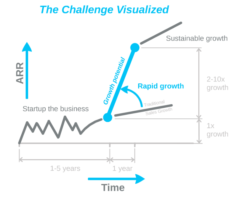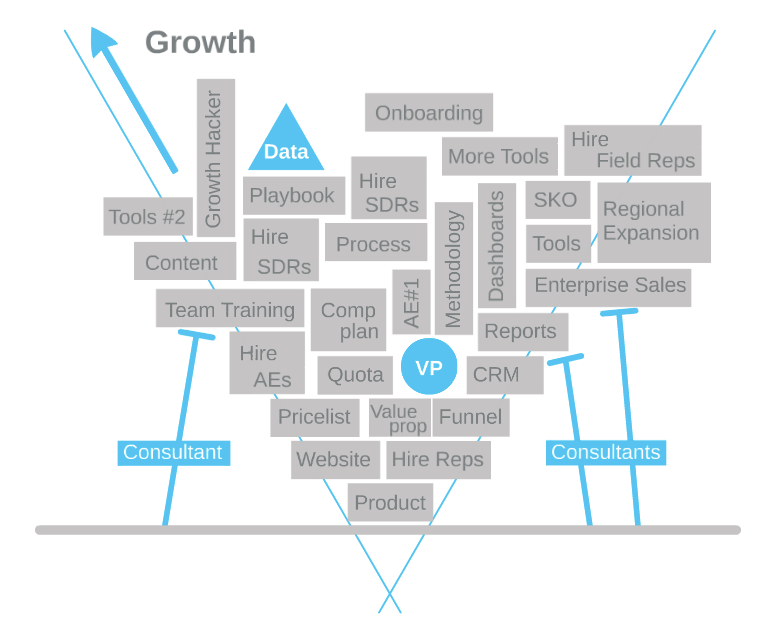 As depicted above, it may take many years for a startup to gain traction. But then as a market catches up, it does so almost overnight. KABOOM!!! suddenly there is an incredible growth potential. The ability to match that potential when it happens, is the difference between ringing the bell on NASDAQ and becoming a Walking Dead. During this KABOOM you need to scale your sales organization, unfortunately most sales organizations are not built to scale.