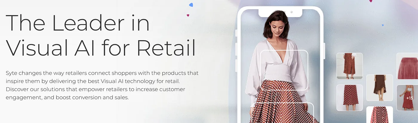 Syte is a Visual AI technology provider that empowers retailers to tap into the personal inspiration of individual shoppers and deliver the right products at the right time, using the most accurate artificial intelligence on the market. Founded in 2015, Syte developed the camera feature for leading brands such as Farfetch, Marks & Spencer, boohoo, Tommy Hilfger, and numerous others, leveraging partnerships with technology innovators, including Microsoft, and SAP.
