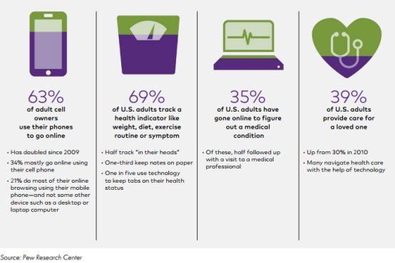 Patient experience was a major theme at HIMSS. Almost 1/3 of all workers are enrolled in a high-deductible health plan with significant out of pocket expenses. Consequently, patients expect and demand the experience they receive from consumer products and are more willing to try digital products. Secondly, patients are more involved in their care. As seen below, nearly 70% of adults track a health indicator and a third did research online.