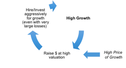 The standard Silicon Valley high growth strategy no longer applies in todays market conditions. In the standard strategy, high growth startups raise huge amounts of cash (think Box and Uber) to grow very aggressively despite incurring a huge cash burn.