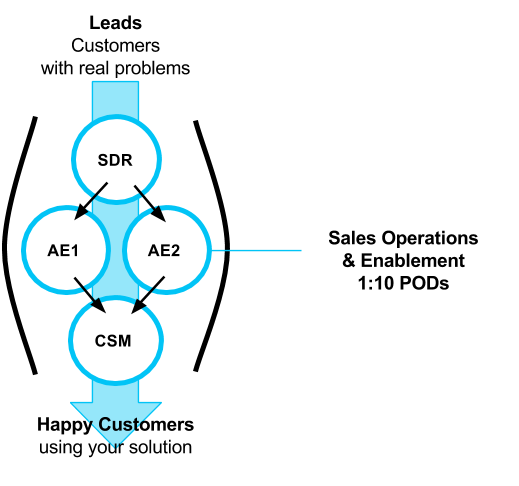 Whatever your ratio, make sure that you don’t stop with just hiring one “jack of all trades”. You should continue to invest in sales effectiveness as you grow your organization. We have written about Sales PODs before and about finding the ideal ratio of SDRs, AEs and CSMs for your organization. Similarly, as you add more sales PODs, you should also add more analysts.