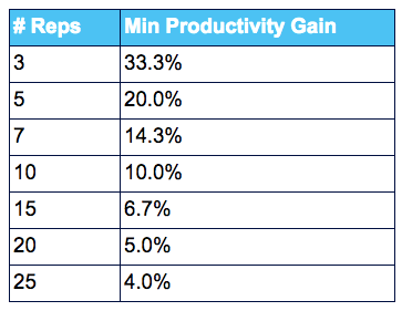 Productivity gain (%) x Quota carrying reps (#) >1