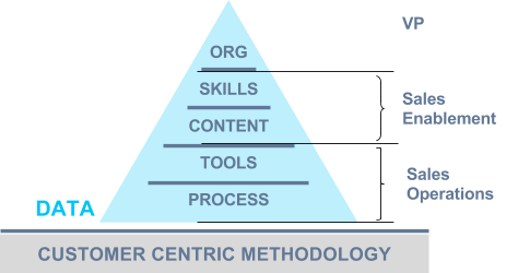 The things we commonly associate with sales operations, like sales compensation, managing forecasts, administering the tools (CRM, etc.), getting orders done, data cleaning, sales enablement, reporting & analytics, etc. are all just means to an end, the end being sales effectiveness and efficiency.